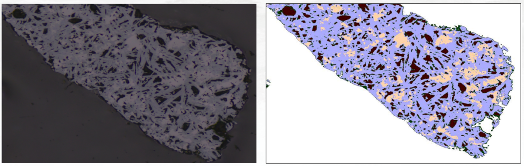 AI-SPS系统(AI based Iron-ore sinter phase and structure analysis system)是专为烧结矿显微图像开发的智能分析系统,融合人工智能与图像识别技术,能够自动识别和量化烧结矿中的主要矿相(如磁铁矿、赤铁矿、铁酸钙等)及其微观结构形态(如针状、纤维状、板柱状铁酸钙;原生、次生赤铁矿),同时评估孔隙结构与分布。传统的矿相分析依赖人工经验,效率低、重复性差,而AI-SPS实现了“全像素识别+自动统计+结果可视化”,仅需简单操作,即可快速获得全面矿相报告。系统适用于烧结过程质量控制、烧结配料方案评估、异常结构排查等场景,帮助企业实现矿相识别的数字化、标准化、自动化,有效提升烧结矿的稳定性、抗压强度和高炉透气性。